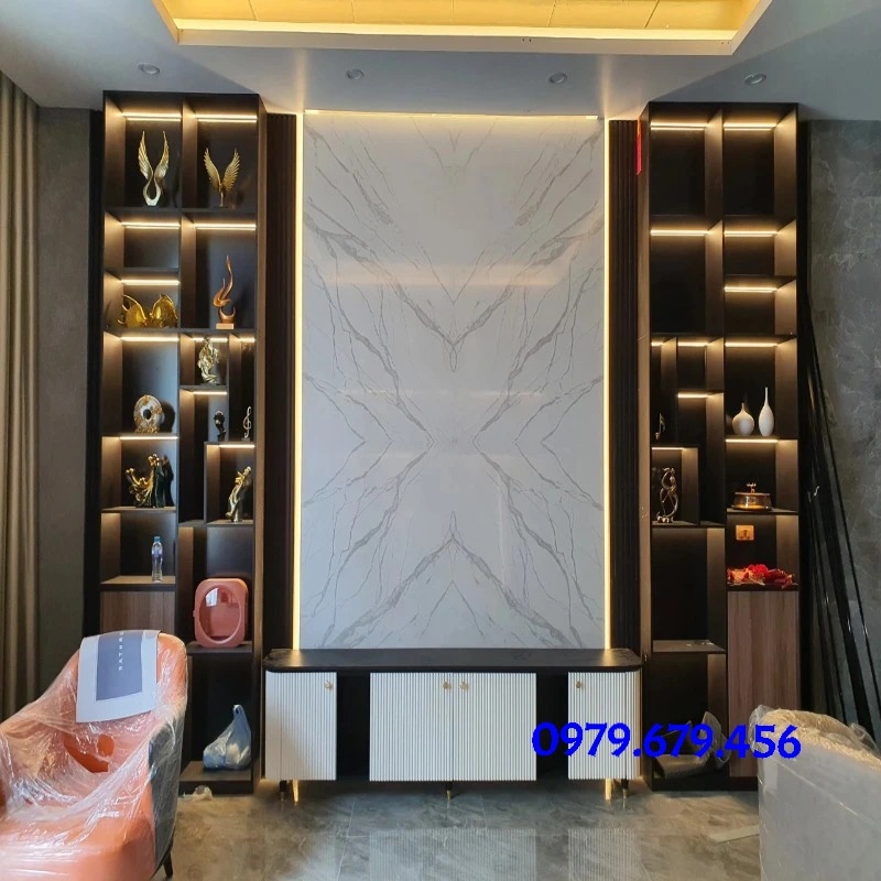 Màu sắc đẹp, độ bền cao rất phù hợp để ốp vách sau tivi, hoặc ốp trang trí phòng khách. Với đội thợ lành nghề, chuyên nghiệp, kinh nghiệm lâu năm, nhiệt tình nên khách hàng rất hài lòng và tin tưởng. Để được tư vấn và thi công các loại đá cho các công trình khác nhau như đá bàn bếp, lavabo, ...