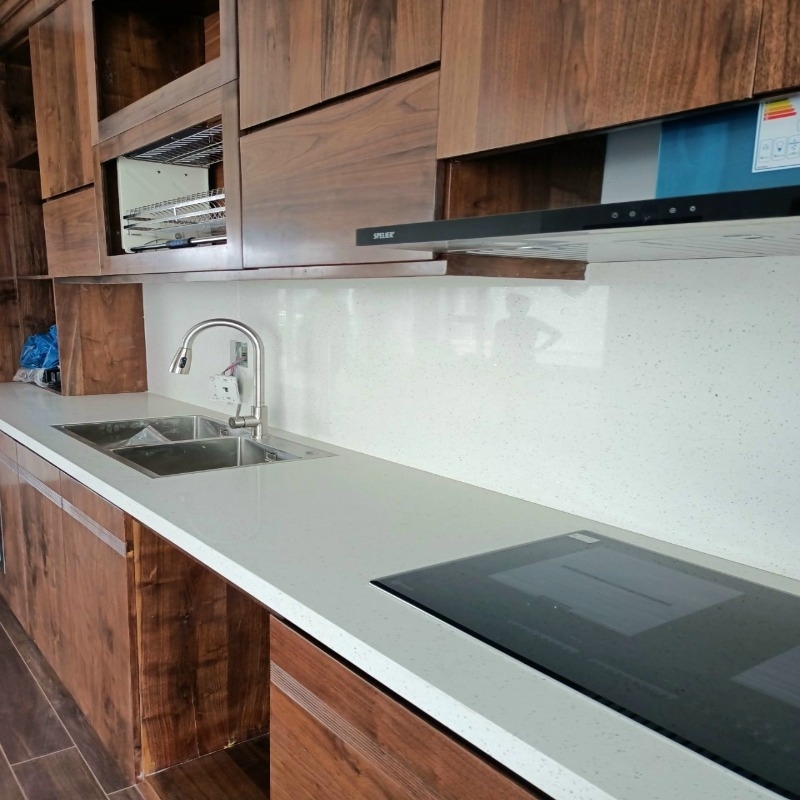 | Đặc điểm | Có độ cứng cao,chống thấm,chống bám bẩn,chịu lực và chịu nhiệt, chịu được mài mòn, giữ độ bóng, thích hợp để làm BÀN BẾP,VÁCH TƯỜNG,BÀN LAVABO, VÁCH TIVI, ỐP TRANG TRÍ, TAM CẤP… kết hợp với KÍNH MÀU ốp bếp làm cho bàn bếp của bạn thêm sang trọng và hiện đại |
