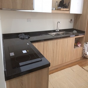 * Đá granit :là loại vật liệu phổ biến dùng cho mặt đá bàn bếp, đá granite khá đa dạng về màu sắc và hoa văn . ưu điểm của đá granite là rất bền và không tốn nhiều công sức bảo dưỡng.Hiện tại đa số mặt bàn bếp tại thị trường hiện nay người tiêu dùng chọn đá granite kim sa bởi vì chúng có giá thành vừa phải có độ bóng độ cứng cao,không thấm nước và dầu mỡ.kích thước đa dạng phù hợp hầu hết mọi nhu cầu.ngoài ra còn có một số loại đá khác cũng rất được ưa chuộng như :đá đen huế,đá xà cừ đen…quý khách không nên chọn những loại đá nhuộm cho mặt đá bàn bếp ví dụ đá đen nhuộm ,đỏ nhuộm vì mặc dù giá thành rẻ nhưng chúng được nhuộm màu bằng hoá chất ,không bền màu ,rất mềm rễ vỡ,trong quá trình sử dụng màu phai ra rất bẩn và độc hại .