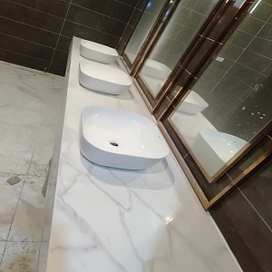 Đá ốp mặt bàn chậu rửa mặt trắng vân chéo