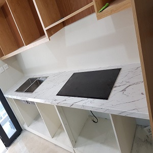 .Là loại đá được tạo ra từ việc pha trộn khoảng 90% bột thạch anh và các loại phụ gia, đá nhân tạo cho quý khách một sự lựa chọn phong phú hơn bất kỳ một loại đá tự nhiên nào, kể cả về màu sắc và hoa văn. đá nhân tạo có độ cứng cao nên gần như không sợ bị trầy xước. đá nhân tạo gần như không có độ rỗng nên rất dễ bảo dưỡng.một nhược điểm là đá nhân tạo là loại vật liệu mới chưa thông dụng nên giá thành hơi cao và ít mẫu mã chủng loại màu sắc