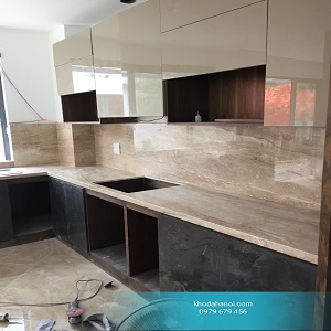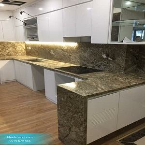 Dưới đây là hình ảnh một số công trình thi công ốp bàn bếp bằng đá ốp lát tại kHO ĐÁ HÀ NỘI